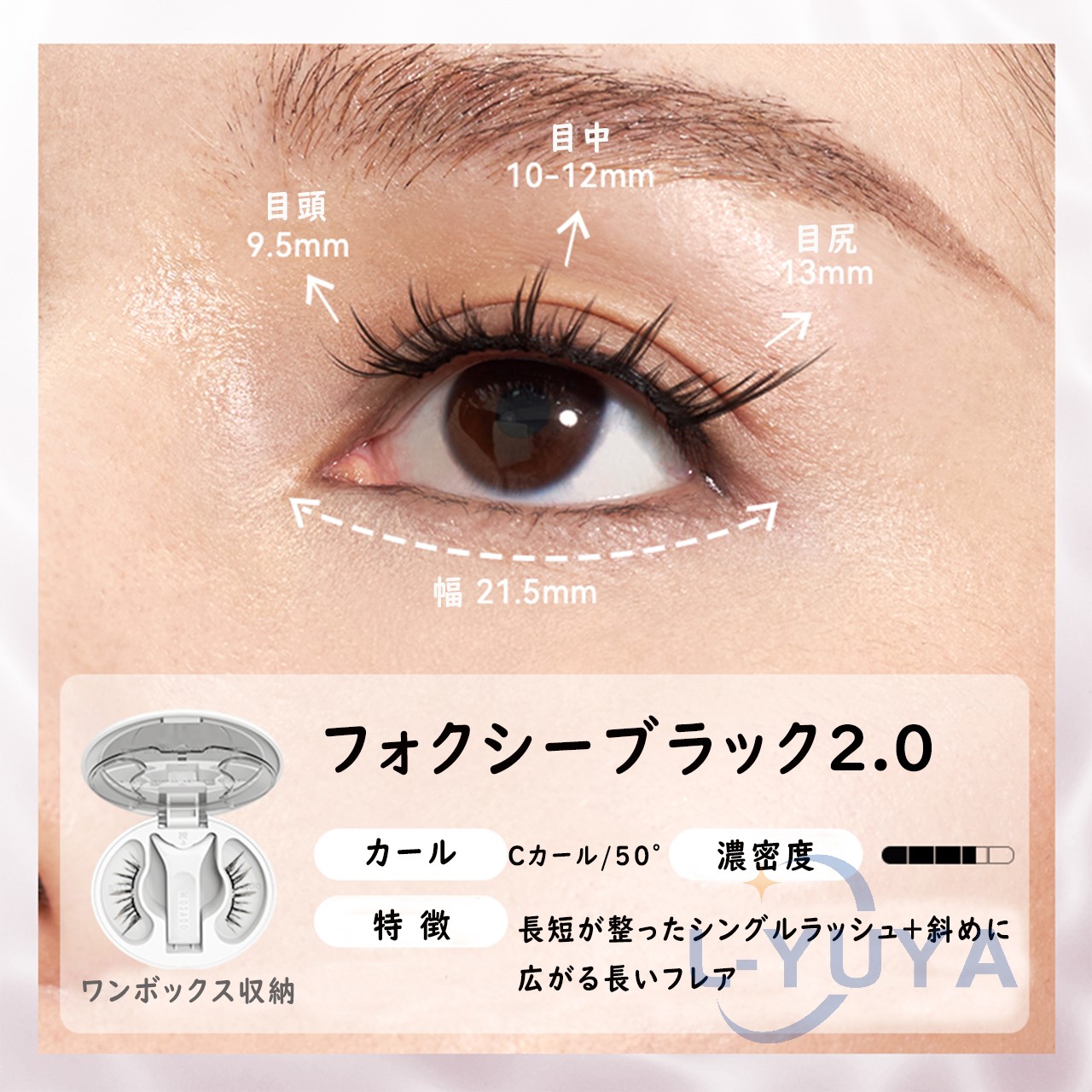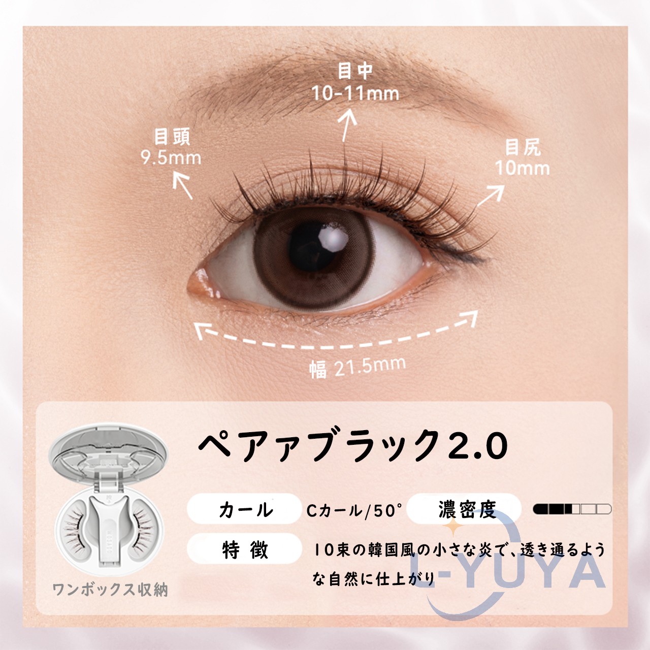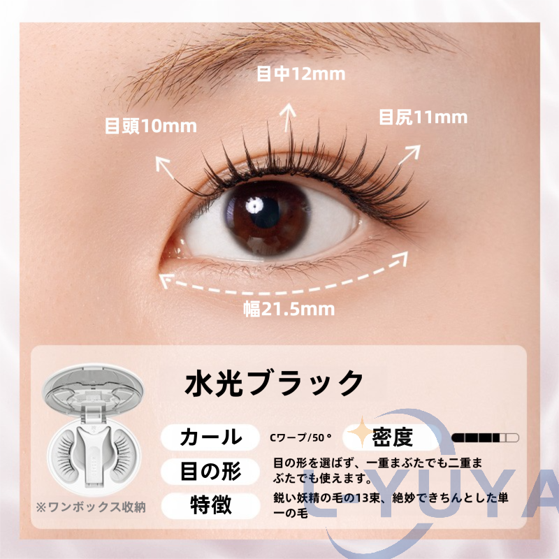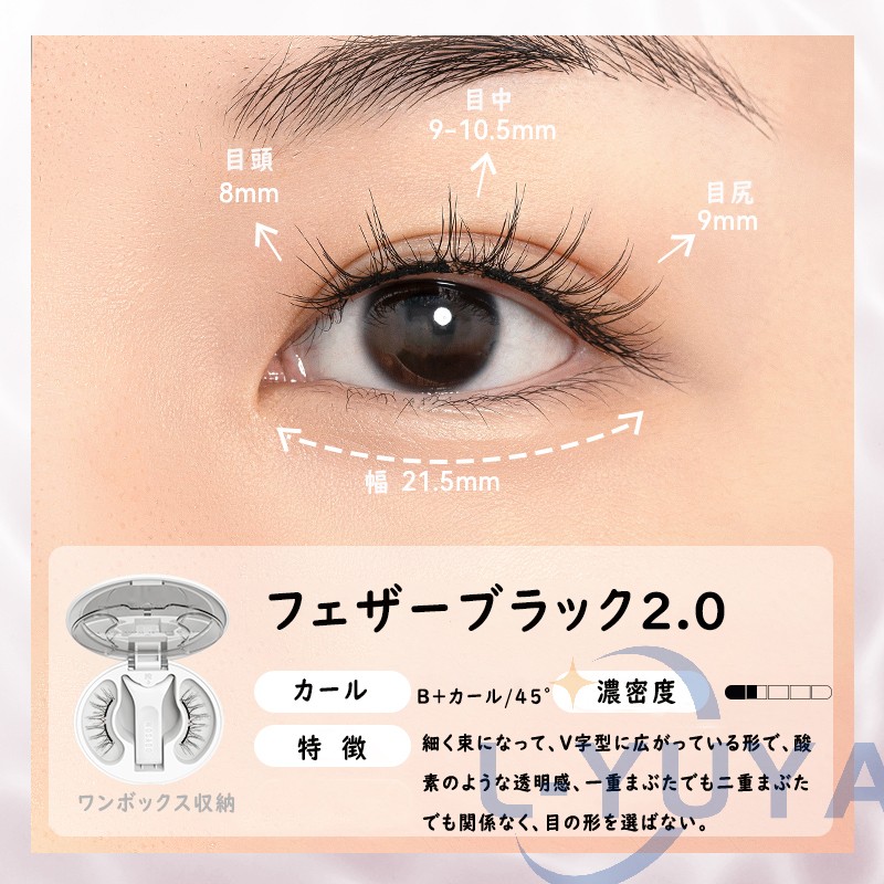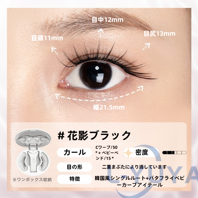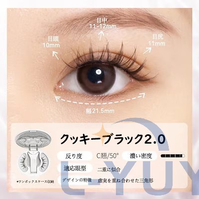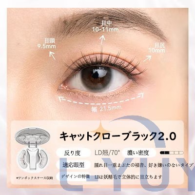 今日用事があったので7時間程付けた結果。 今回はビューラーで上げたあとマスカラなど付けずに使用しました。 用事の場所までは自転車でそこそこの風が吹いていましたがそこは大丈夫でした!ただ時間経過で左の方だけズレてきました︎( ¨̯ )ケースを持ち歩いた方がいいですね。帰りは不安だったので結局外しました! 母と一緒に居たので細かく聞いたのですが正面から見たら違和感ないけど、目を伏せるとバサバサ感が凄くて横から至近距離で見ると少しズレてる?浮いてる?感じがする、と言われました。(これは私の付け方の問題かも!もっと付け方頑張ってみます) 気になったのは少し目を伏せると視界に黒い物があるな〜と感じます。瞼が重いとかはありませんが、目周りが敏感な方はやめておいた方がいいと思います。