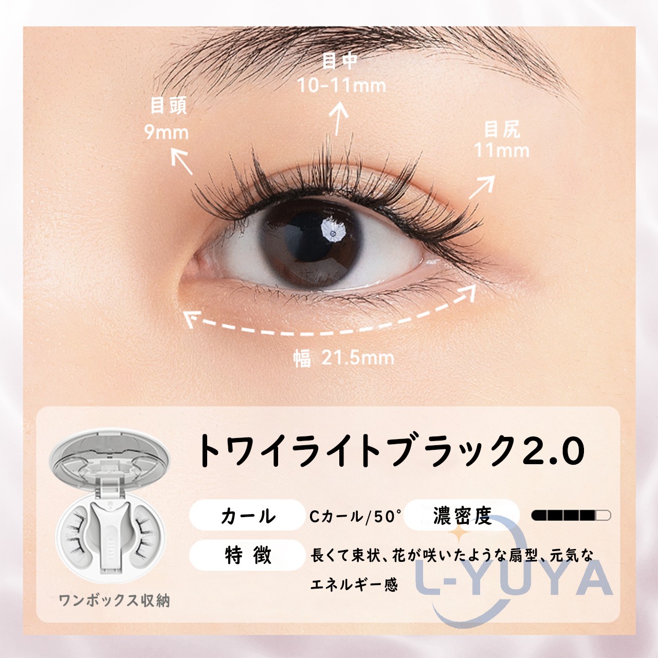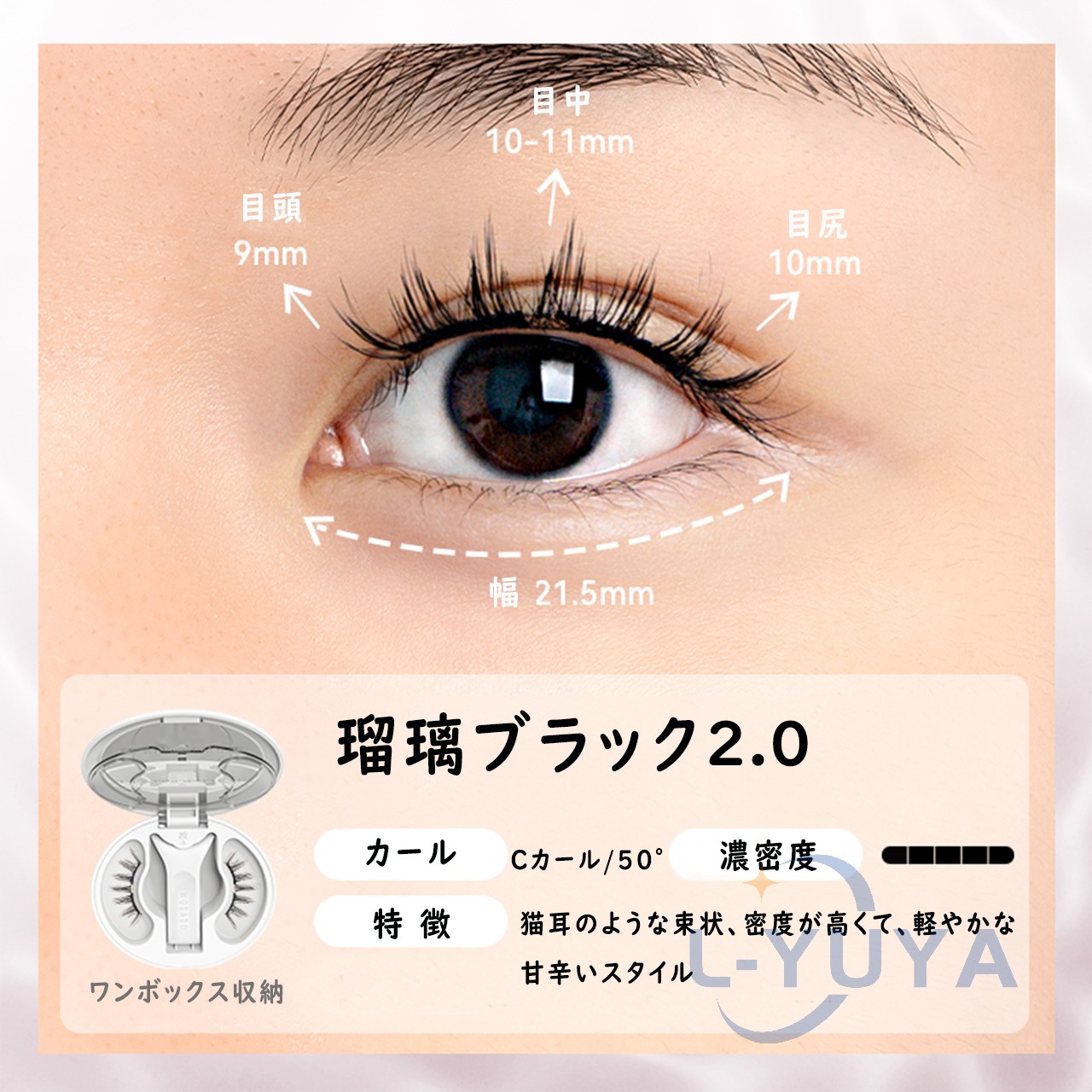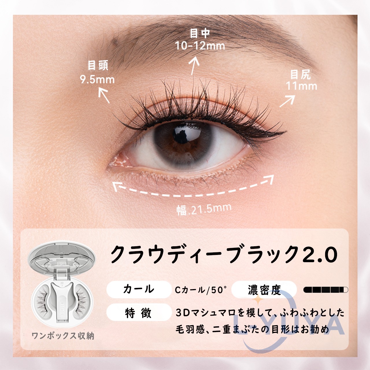 今日用事があったので7時間程付けた結果。 今回はビューラーで上げたあとマスカラなど付けずに使用しました。 用事の場所までは自転車でそこそこの風が吹いていましたがそこは大丈夫でした!ただ時間経過で左の方だけズレてきました︎( ¨̯ )ケースを持ち歩いた方がいいですね。帰りは不安だったので結局外しました! 母と一緒に居たので細かく聞いたのですが正面から見たら違和感ないけど、目を伏せるとバサバサ感が凄くて横から至近距離で見ると少しズレてる?浮いてる?感じがする、と言われました。(これは私の付け方の問題かも!もっと付け方頑張ってみます) 気になったのは少し目を伏せると視界に黒い物があるな〜と感じます。瞼が重いとかはありませんが、目周りが敏感な方はやめておいた方がいいと思います。