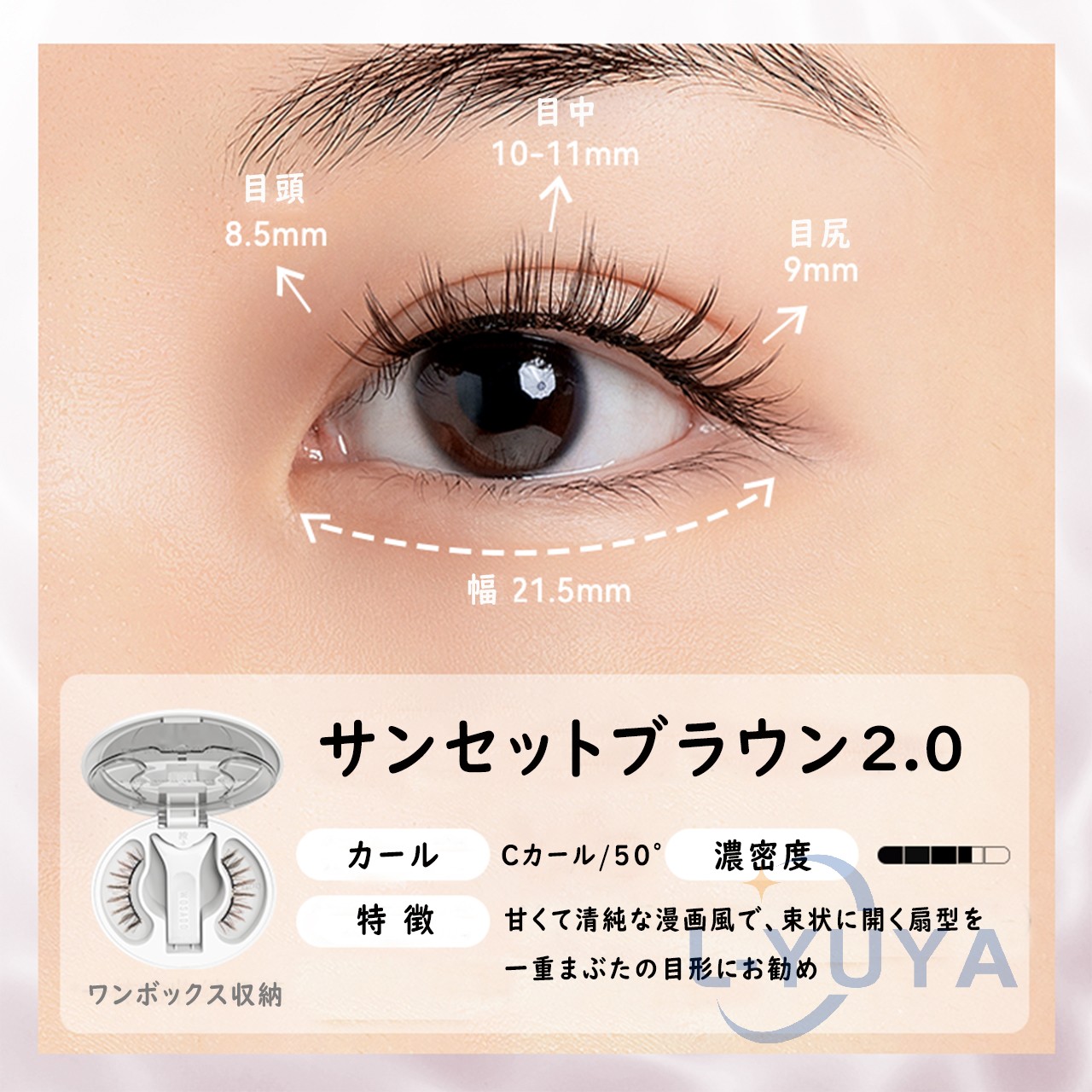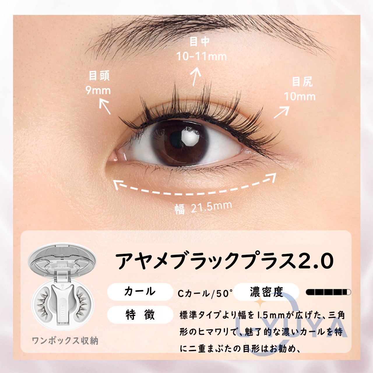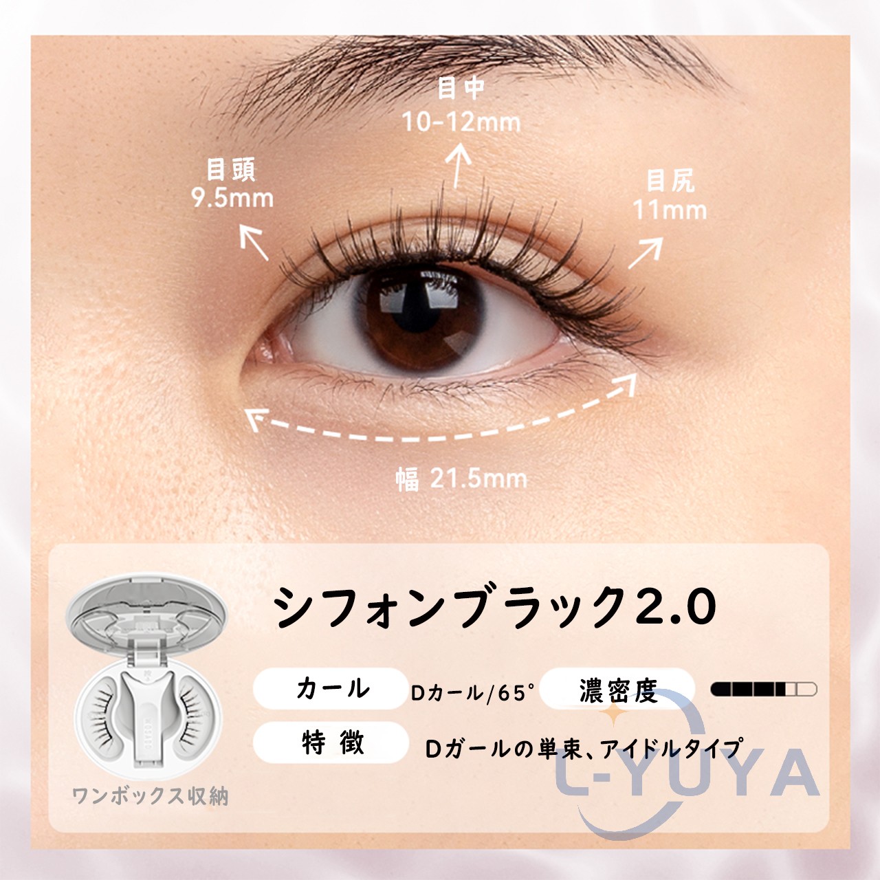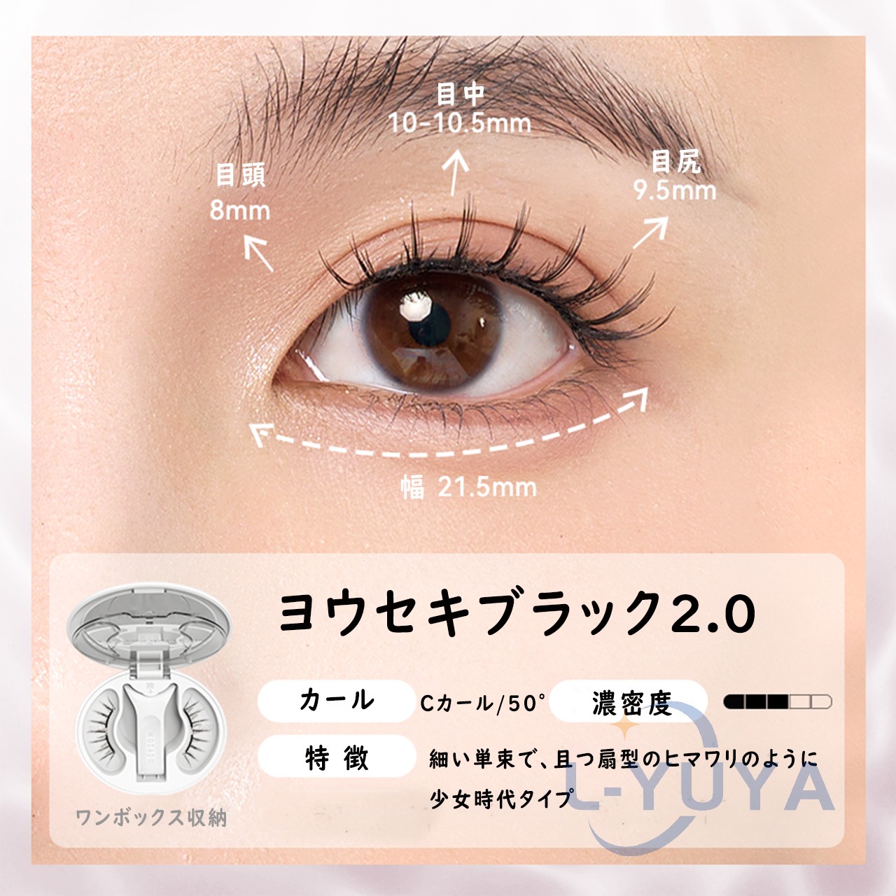 今日用事があったので7時間程付けた結果。 今回はビューラーで上げたあとマスカラなど付けずに使用しました。 用事の場所までは自転車でそこそこの風が吹いていましたがそこは大丈夫でした!ただ時間経過で左の方だけズレてきました︎( ¨̯ )ケースを持ち歩いた方がいいですね。帰りは不安だったので結局外しました! 母と一緒に居たので細かく聞いたのですが正面から見たら違和感ないけど、目を伏せるとバサバサ感が凄くて横から至近距離で見ると少しズレてる?浮いてる?感じがする、と言われました。(これは私の付け方の問題かも!もっと付け方頑張ってみます) 気になったのは少し目を伏せると視界に黒い物があるな〜と感じます。瞼が重いとかはありませんが、目周りが敏感な方はやめておいた方がいいと思います。